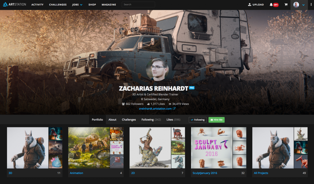 The ArtStation platform operates as a social network and offers a good chance for you to build a community of other artists. Artists often call upon people they know when their studio is hiring, so it’s a good idea to establish those connections. Follow other artists that you like. They’ll get the notifications and may follow you back too. Don’t be one of those artists who just comes to ArtStation to post work but doesn’t engage – artists can tell easily by seeing how many people you follow.