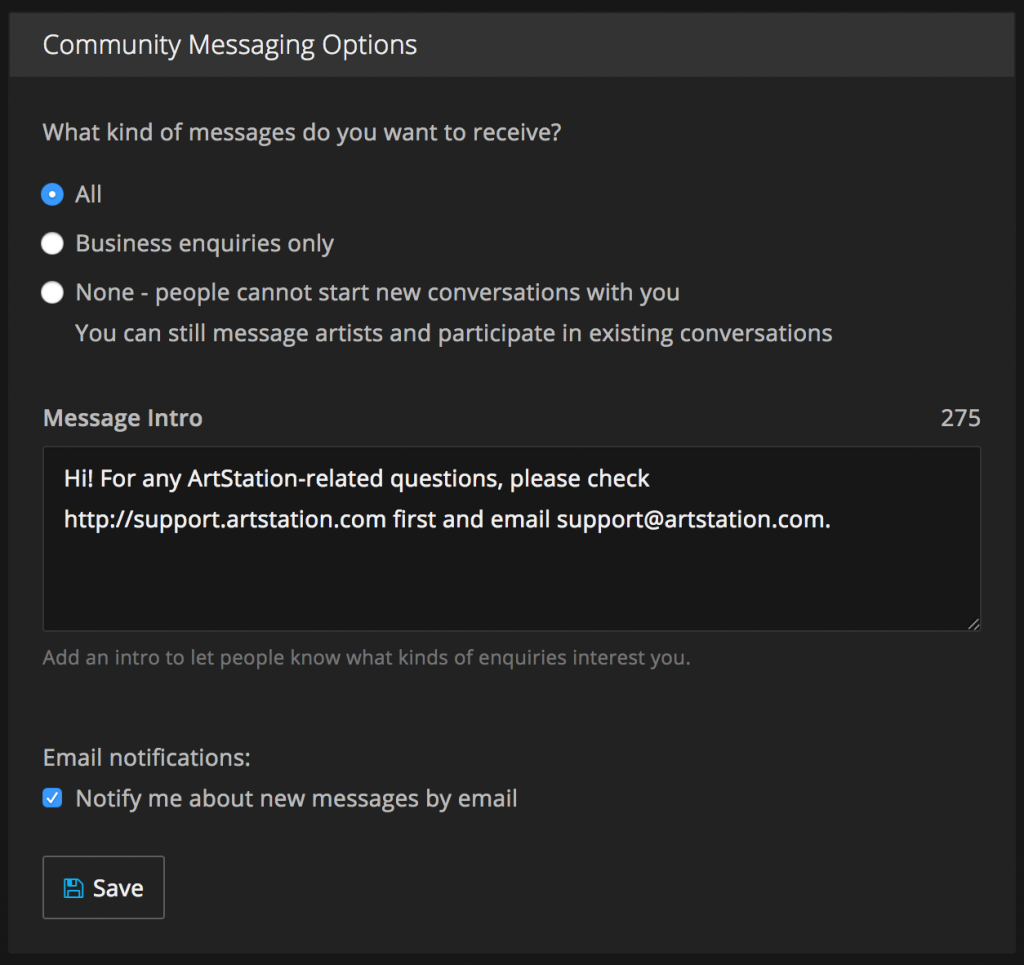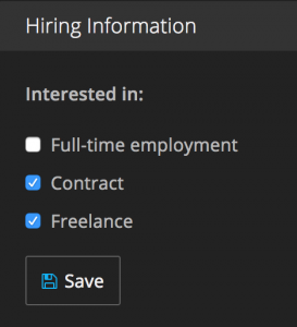 This is basic, but we often see accounts where artists forget to switch on the “Hire Me” feature on their profile, and do not provide ways to contact you. The Messaging feature enables interested parties to contact you about work. It’s also important to set your hiring preferences as this goes into the Artist Search engine, enabling companies to find you easily.