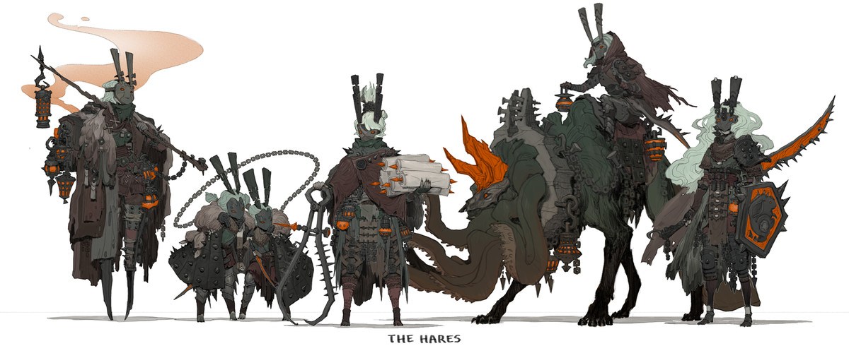 Carlyn: Not really. I do like a few more than the others, only because the world the characters live in and the visual language for each faction had time to mature a little more. The rabbit warrior for example, was the very first one I sketched of the entire lot–she could be more interesting!
