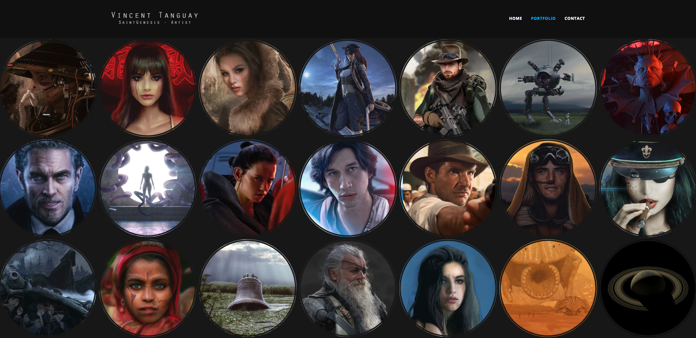 Vincent Tanguay is a freelance concept artist based in Sherbrooke, Canada. Though his portfolio shows a variety of subject matter and style, it’s pretty clear he loves focusing on the face. ArtStation Pro websites enable artists to customize their portfolio to showcase their artwork creatively. While his home page uses the popular and clean Bombastic theme, his customized thumbnails for the portfolio view gives his presentation a unique twist.
