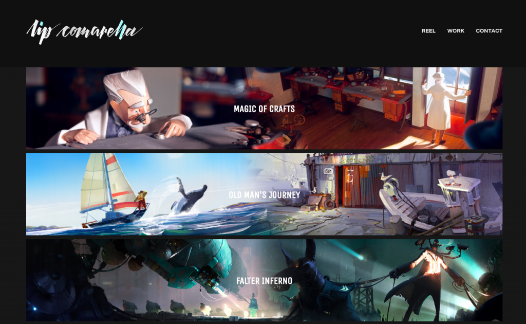 The ArtStation Pro website builder has such great customizable themes that are used by both aspiring artists and established professionals alike. Our Featured Pro Portfolio artist this week is Lip Comarella, an Italian animation director and visual development artist at Salon Alpin. The horizontal theme he chose for his portfolio is perfect to showcase and separate the wide artwork for his project albums.