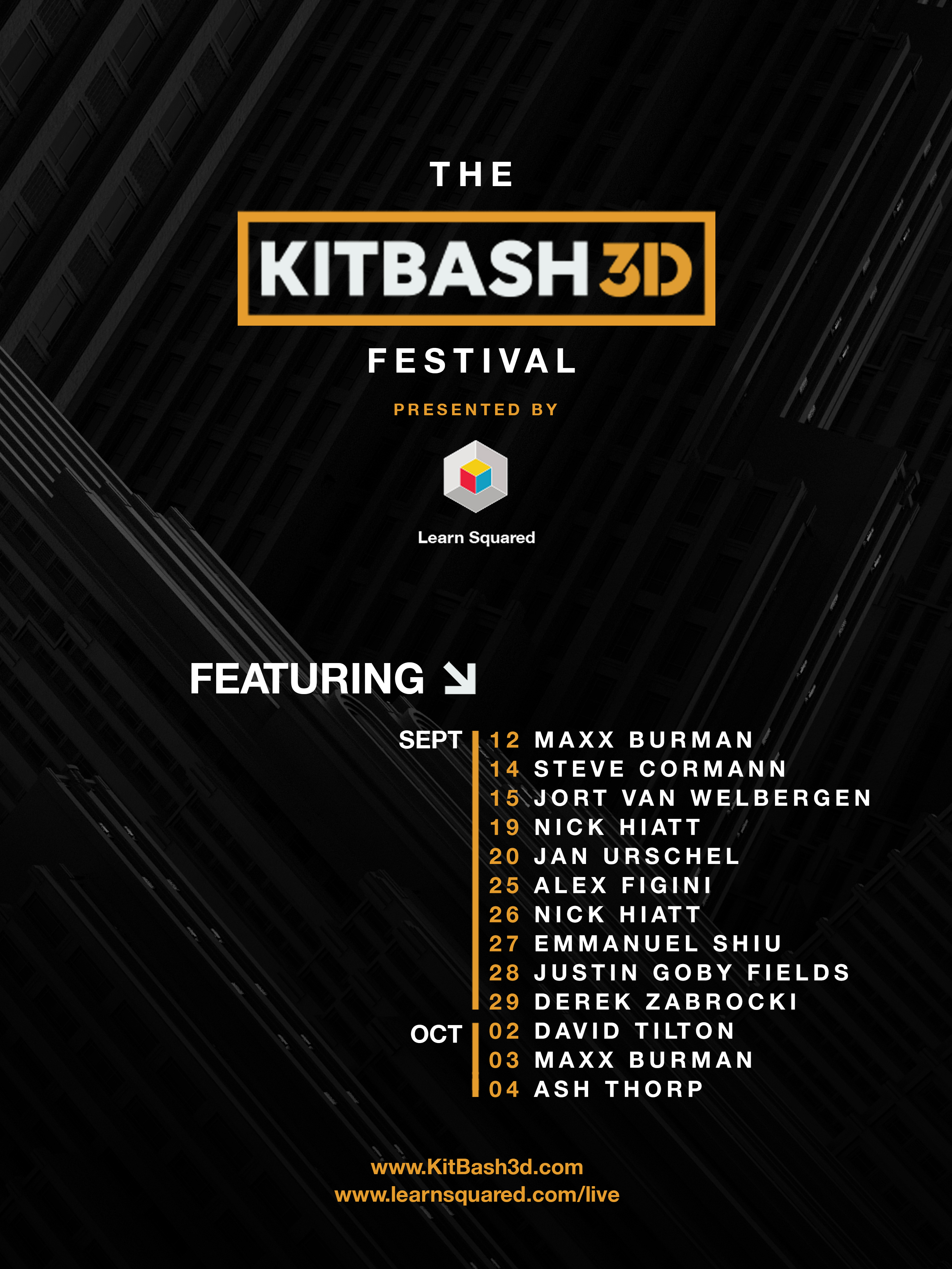 Sign up for The KitBash3d Festival updates and receive a free sample kit by visiting www.KitBash3d.com.