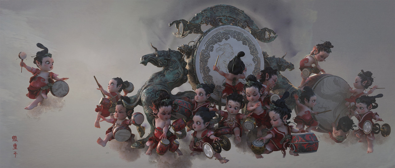 Hu studied at the Entertainment Technology Center at Carnegie Melon University and currently works as a technical artist at ILM. He describes his distinct style as “inspired by traditional Chinese expressionistic sensibilities and western technology”.