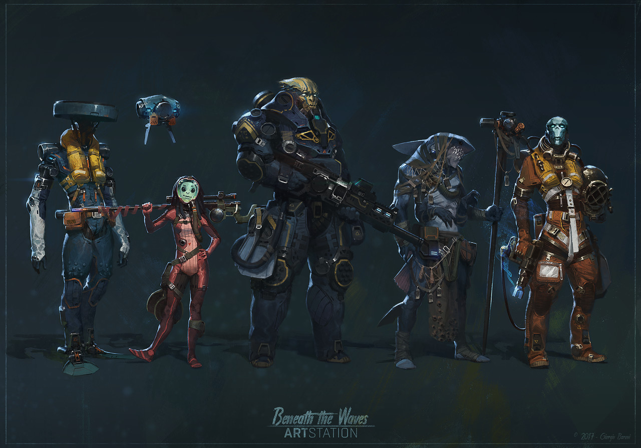 Giorgio: I couldn’t miss another one! For different reasons, I couldn’t get into the first few so as soon as I saw the “New Challenge Coming Soon’ announcement on the ArtStation Facebook page, I told myself ‘this is it’. Then the day came and when I read the brief, I immediately fell in love with it. It was so cool! Underwater creatures, humanoids…I couldn’t ask for more! And with such unrestricted guidelines, one could go as deep as his imagination could…and that’s why so many amazing creations came from this challenge.