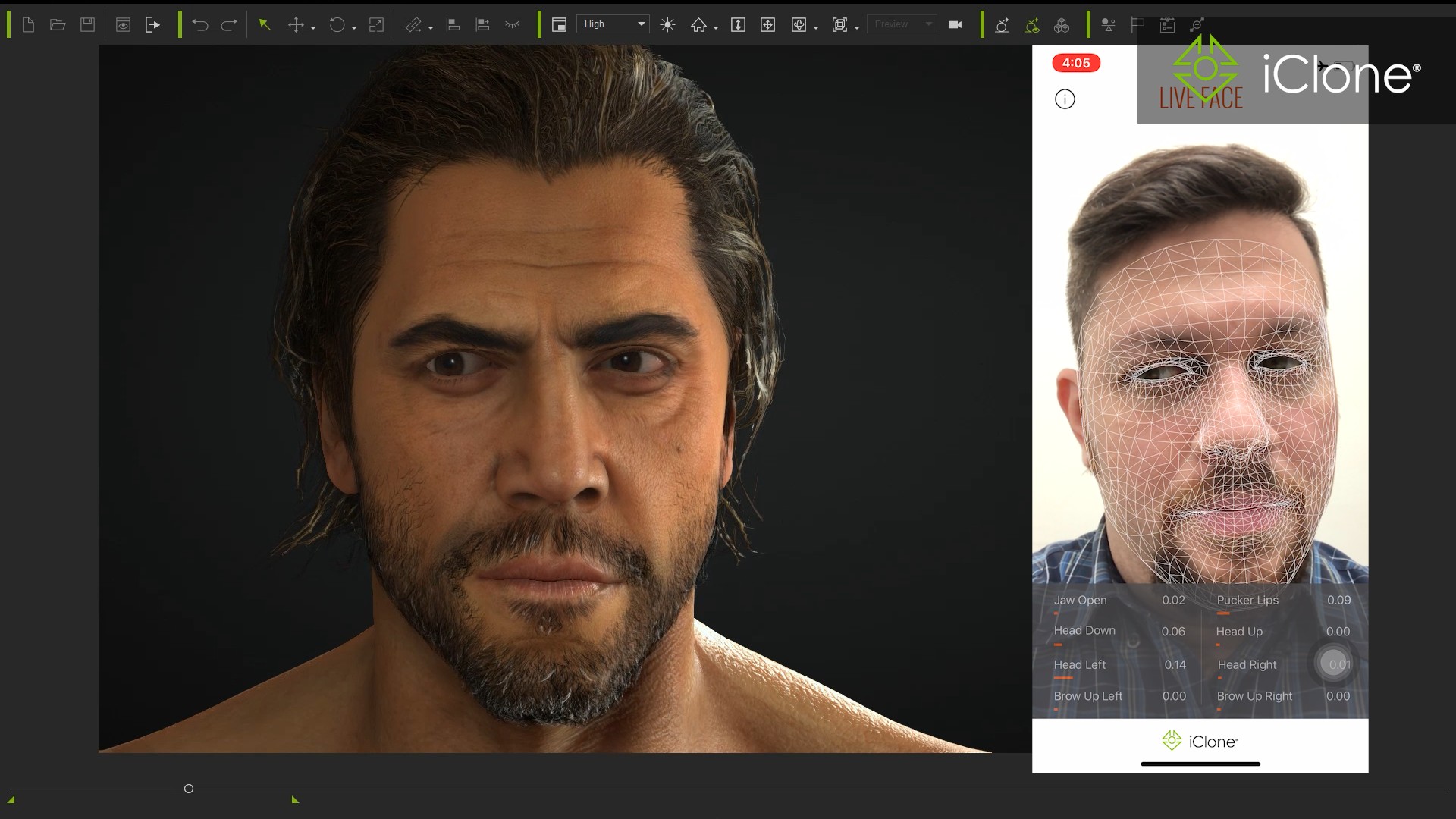 It took Hossein 3 weeks to create a stunning character sculpt and textures. During the project, Reallusion incorporated the newly introduced Digital Human Shader to present its photorealistic quality. A new facial hair system was included which allows beard conforming and animates with facial expressions. Finally, Reallusion utilized the iClone Unreal Live Link to live perform the Javier character. All this completed within 4 weeks.
