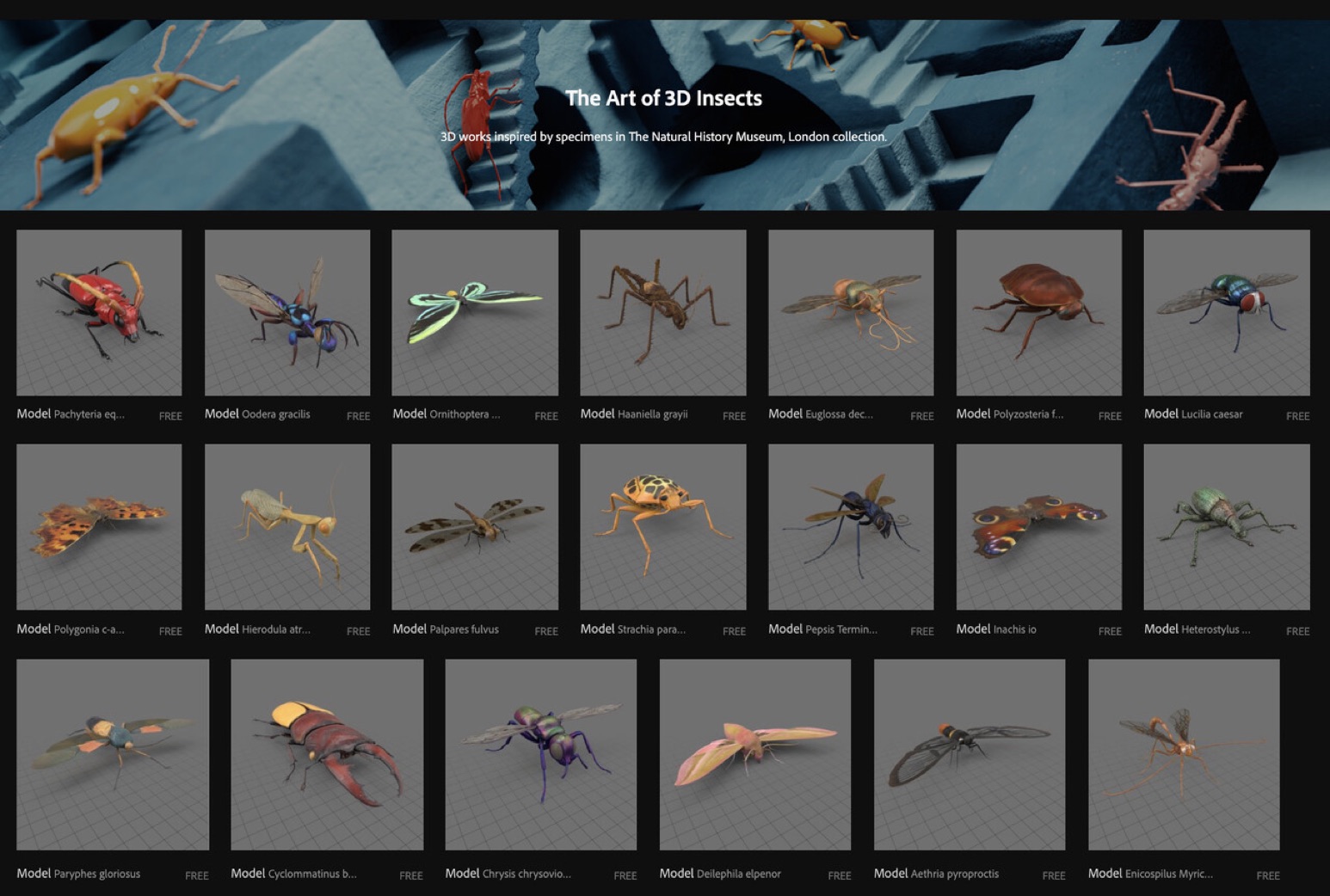 This prestigious institution is on a mission to digitize and make its collection available to the public. The Museum’s collection holds the information necessary to tackle the scientific and societal challenges of our time—from conserving the biodiversity and the planet’s health to finding new ways to combat disease and extract mineral resources. In tribute to this mission, Adobe has partnered with the Museum to create a custom curated collection of 20 insects, inspired by specimens from the Museum’s Data Portal.
