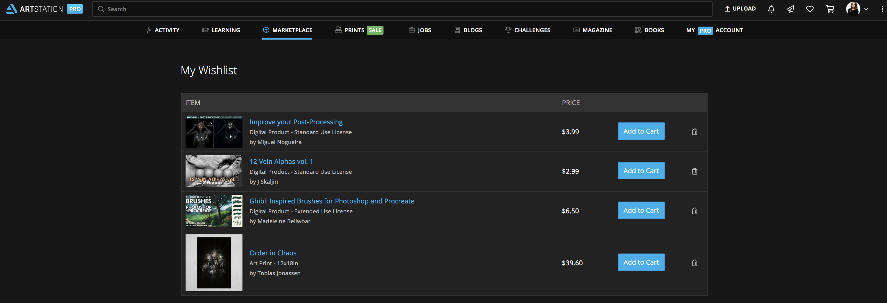 Found products you love but can’t buy them right now? ArtStation just released a wishlist functionality on the Marketplace and Prints so you can create a personalized collection of products you want to save for later.