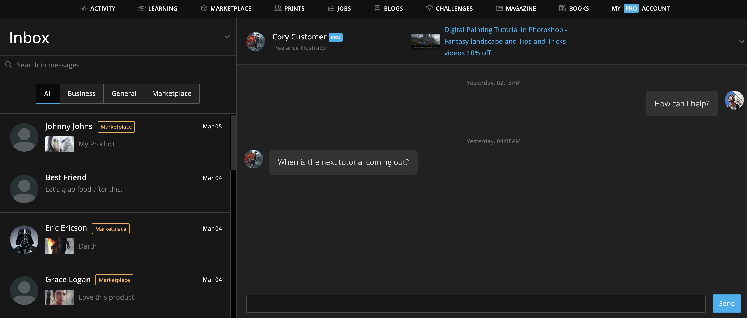 You can sort and find messages related to Marketplace products with the Marketplace tab. The product or order that the message came from appears at the top of the thread so you can effortlessly keep track of conversations.