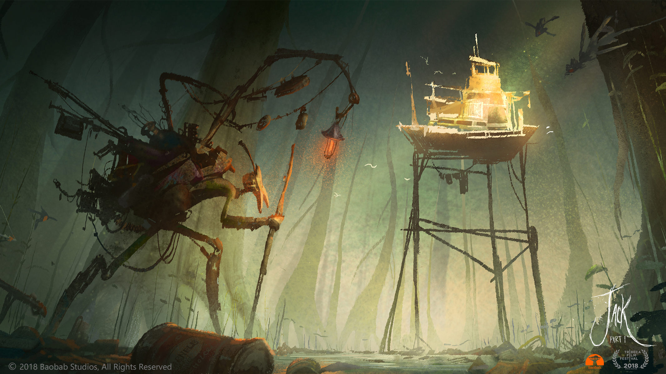 And now, on our five-year anniversary, it is an honor to share some of the work from our new book, “The Art of Baobab Studios”. I am so proud of what our small team has been able to accomplish over this period. We want the audience to feel that they can literally reach out and touch these worlds—from the fur of Chloe the bunny, to the organic machinery of Mac and Cheez’s spaceship, the dithered forest and heavens of Crow, the swamps of Jack, the graphical alien forest in Bonfire, and the theatrical sets of Baba Yaga. Many times the artists and engineers thought it impossible to achieve this level of artistry in a real-time game engine, but time after time, they achieved the impossible. And so Baobab Studios has won an Emmy Award for Best Interactive Media for every qualifying project the studio has created, and. Our piece Crow: The Legend, featuring John Legend, also won a second Emmy for Production Design, a third for Character Design, and a fourth for Directing.