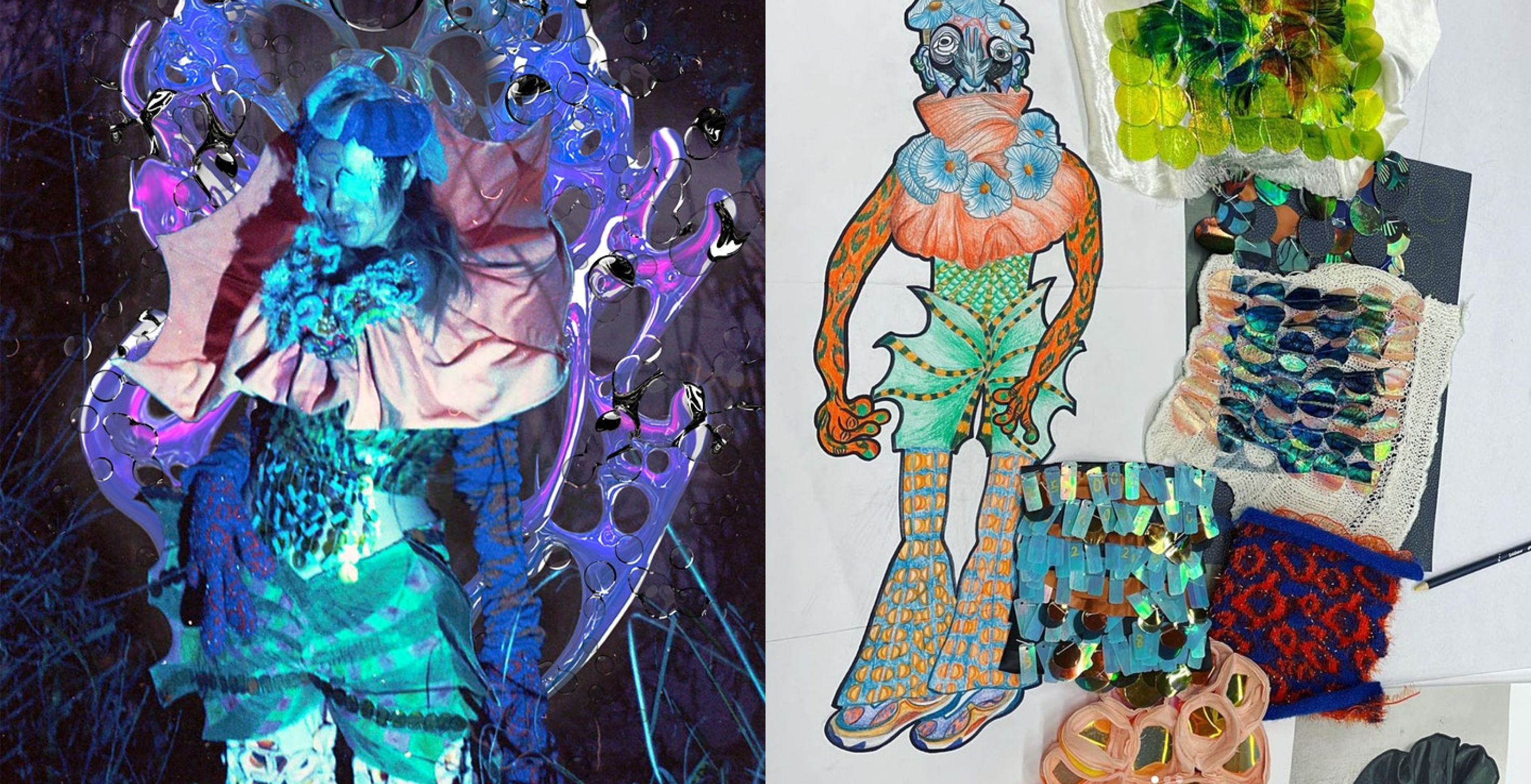 Join Drawing Cabaret Couture and CSM students Jiaxi Wang and Tasnim Chowdhury as they showcase two of their incredible futuristic looks in a two-hour-long online drawing class. The session features a bespoke set design by Matthew Lawrence, artist and co-founder of Drawing Cabaret Couture. Modeling is provided by the professional dancers and models of J’adore La Vie.
